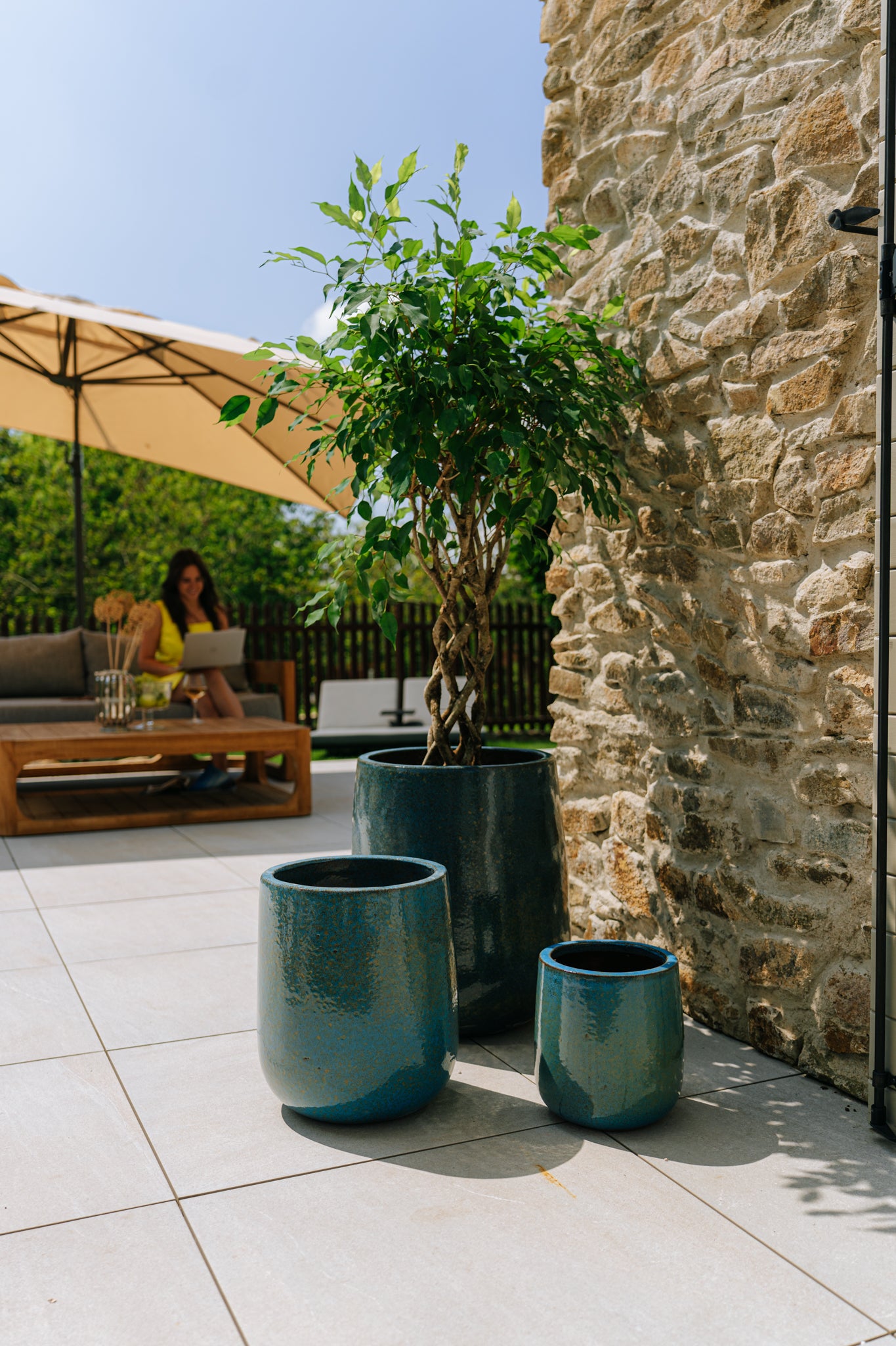 Keramický květináč LAFONTAINE - Mořsky modrá