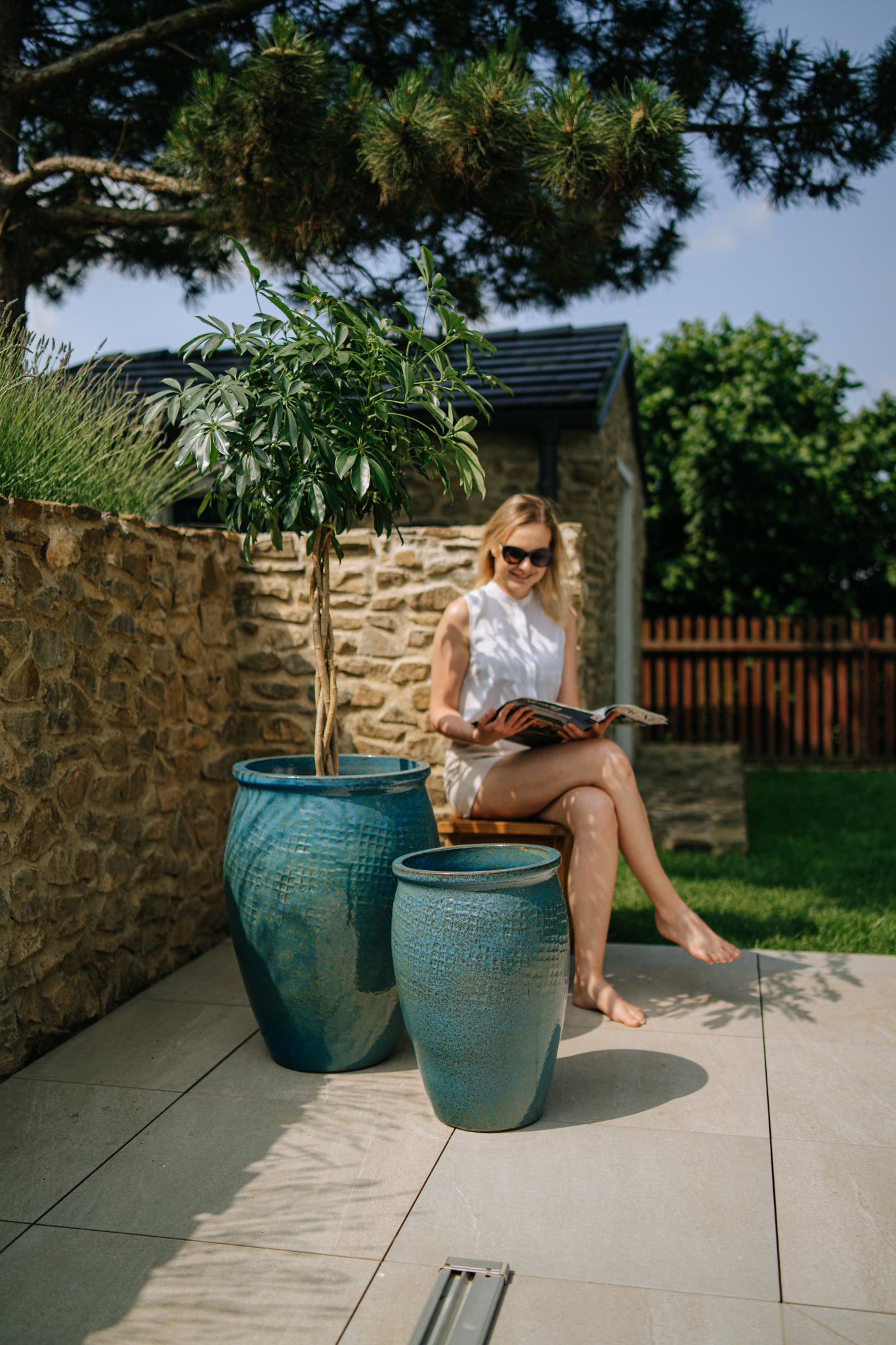 Keramický květináč LAFONTAINE - Mořsky modrá