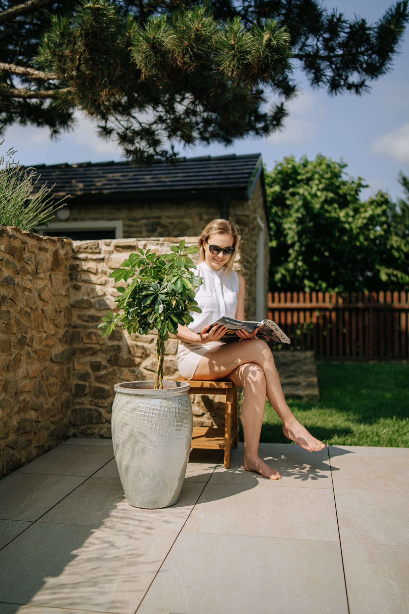 Keramický květináč LAFONTAINE - Ocelově modrá