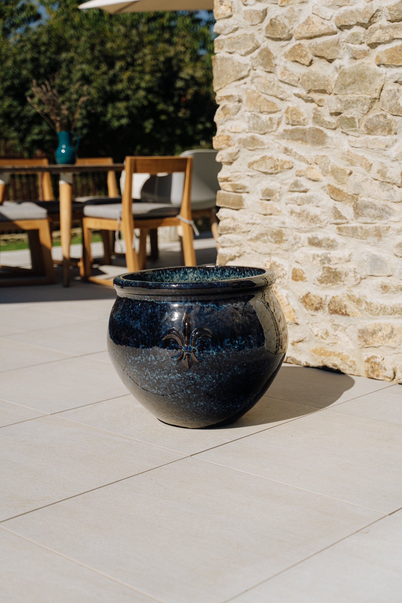 Obohaťte svou zahradu o nadčasový styl s ručně vyráběným květináčem Provencelia Clovis. Tento květináč, inspirovaný tradičním stylem Anduze, je pečlivě vyroben z glazované terakoty, která je odolná vůči mrazu a povětrnostním vlivům. Na výběr máte ze dvou různých velikostí. Tento květináč vyniká svou nádhernou modrou barvou, obří velikostí a ozdobným znakem podtrhujícím jeho čistotu a luxusní vzhled.