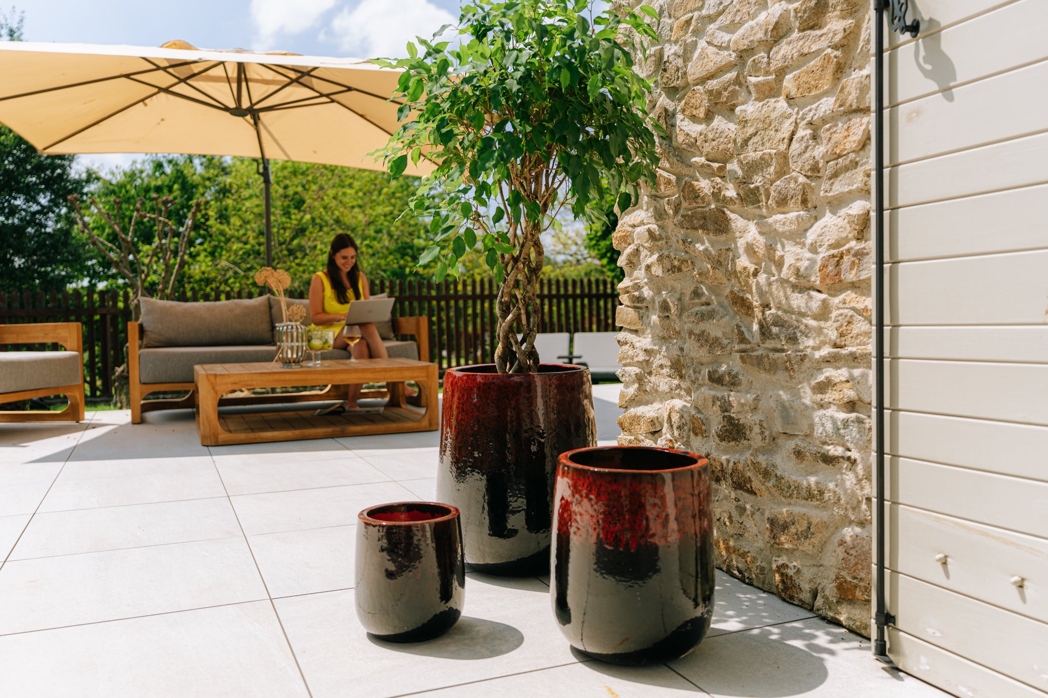 Zvýrazněte krásu svých rostlin s květináčem Diane. Jeho čistý a nadčasový tvar poskytuje ideální zázemí pro vaše kvetoucí i zelené rostliny. Ručně vyrobený z glazované terakoty spojuje odolnost s estetikou. Díky svému jednoduchému a elegantnímu designu se skvěle hodí do vaší zahrady, na terasu nebo balkon. S květináčem Diane vytvoříte harmonický a vkusný venkovní prostor. Díky výrazné červeno černé barvě tento květináč vyzařuje přirozenou eleganci, která dokonale ozdobí vaši terasu či zahradu.