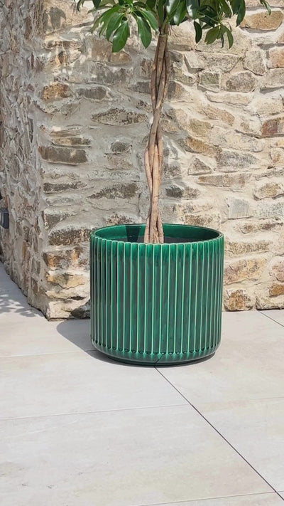 Elegantní keramický květináč v atraktivní tmavě zelené barvě přinese do vašeho domova či zahrady moderní šarm. Tento květináč je dostupný ve třech velikostech, což umožňuje jeho snadné přizpůsobení pro různé druhy rostlin. Jemné žebrování dodává květináči sofistikovaný vzhled a činí ho atraktivním dekorativním prvkem. Díky mrazuvzdornému materiálu je ideální jak pro interiér, tak i pro exteriér, takže si jeho krásu můžete užívat po celý rok.