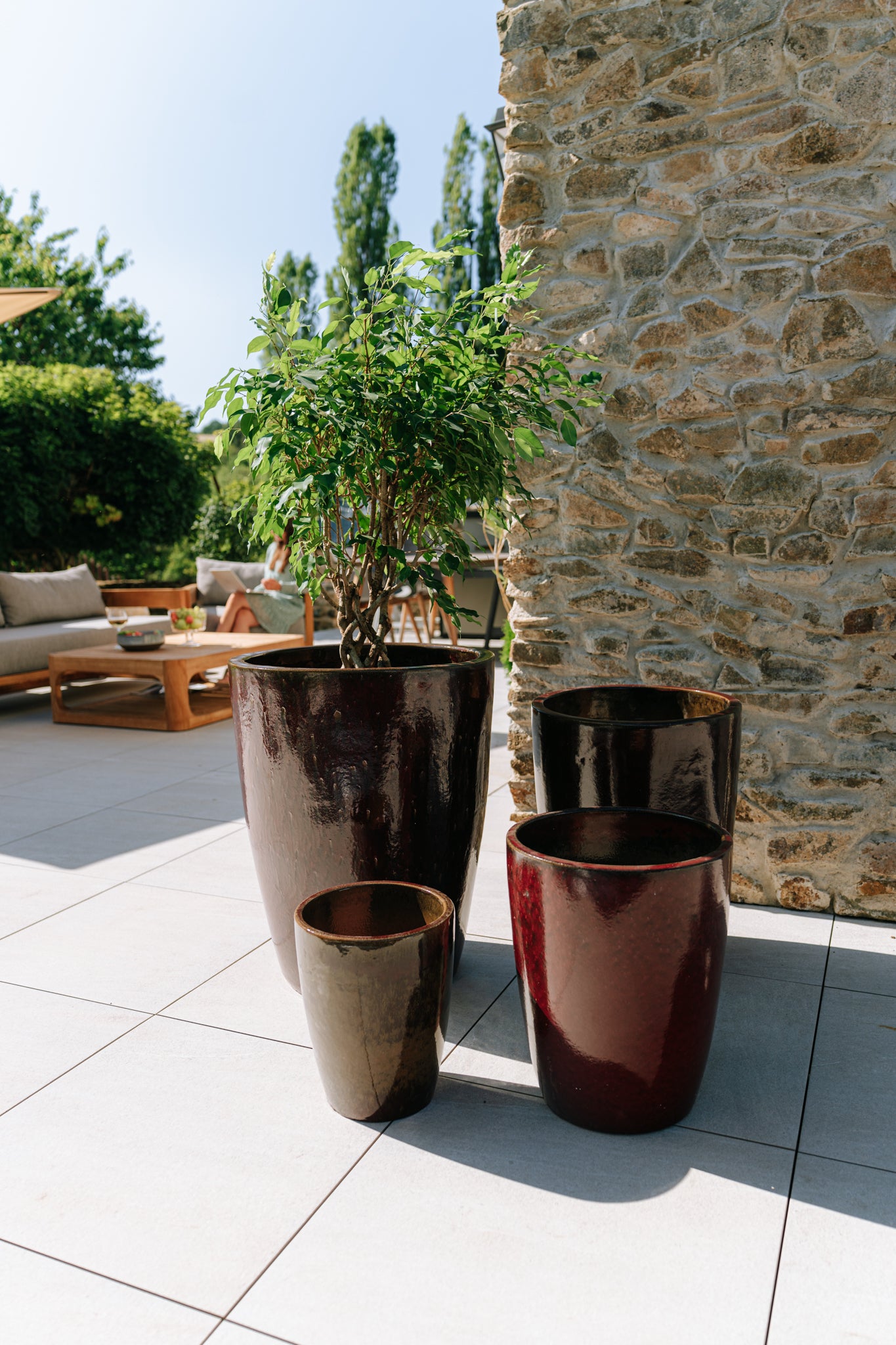Květináč Mazarin je ručně vyráběný z glazované terakoty zkušenými řemeslníky, díky čemuž je každý kus originál. Jeho jednoduchý a vytříbený tvar se hodí do klasických i moderních exteriérů, je odolný vůči povětrnostním vlivům a snadno se udržuje. Temná, cihlově červená barva podtrhuje eleganci a vytváří přirozenou harmonii s vaší zelení. Květináč Mazarin je ideální volbou pro milovníky krásných rostlin a autentického designu a stane se nepřehlédnutelným doplňkem vaší zahrady, terasy či balkonu.