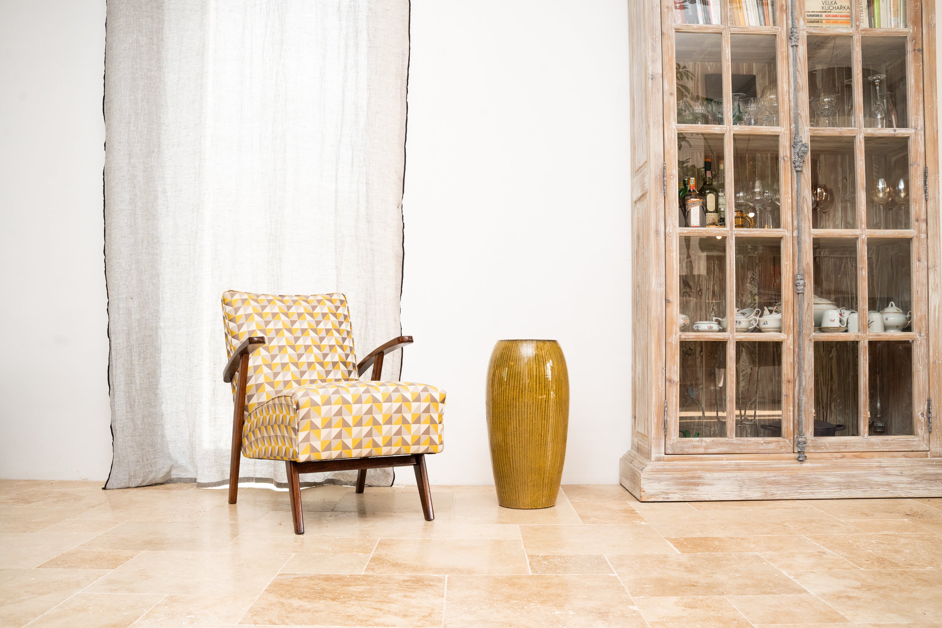 Tento elegantní keramický květináč v žluté glazuře s jemným vertikálním žíháním dodá vašemu interiéru i exteriéru svěžest, eleganci a výrazný stylový akcent. Díky své jediné, pečlivě navržené velikosti – výšce 61 cm a průměru 31 cm – je ideální pro vyšší dekorativní rostliny, byliny nebo štíhlé keře.