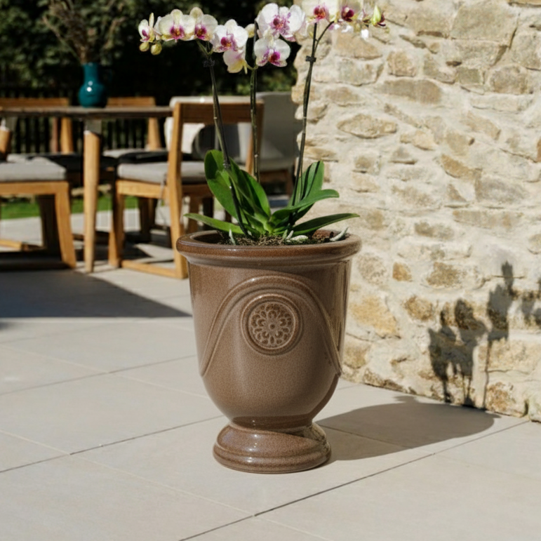 Pozdvihněte svůj venkovní prostor s květináčem Molière, ručně vyráběným originálem z glazované terakoty. Tento elegantní květináč se vyznačuje ikonickým tvarem inspirovaným klasickými anduze květináči a majestátními liniemi medicejské keramiky. Nabízí velkorysý objem pro zdravý růst rostlin, zatímco jeho nadčasový design přináší do prostoru harmonii tradice a elegance.