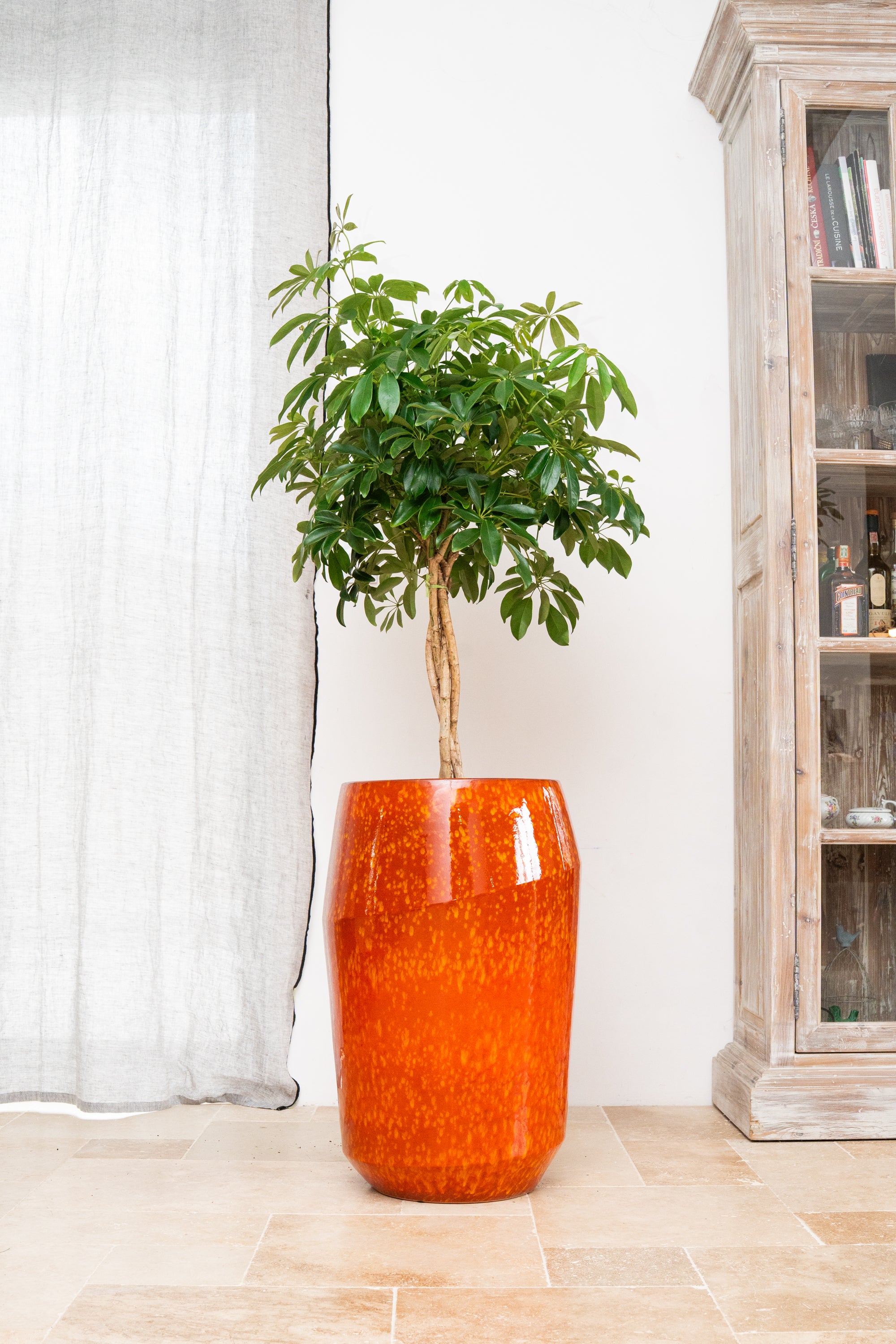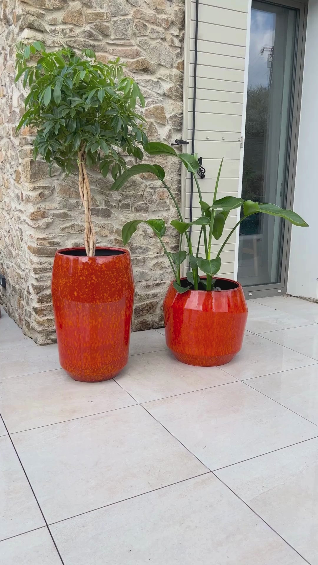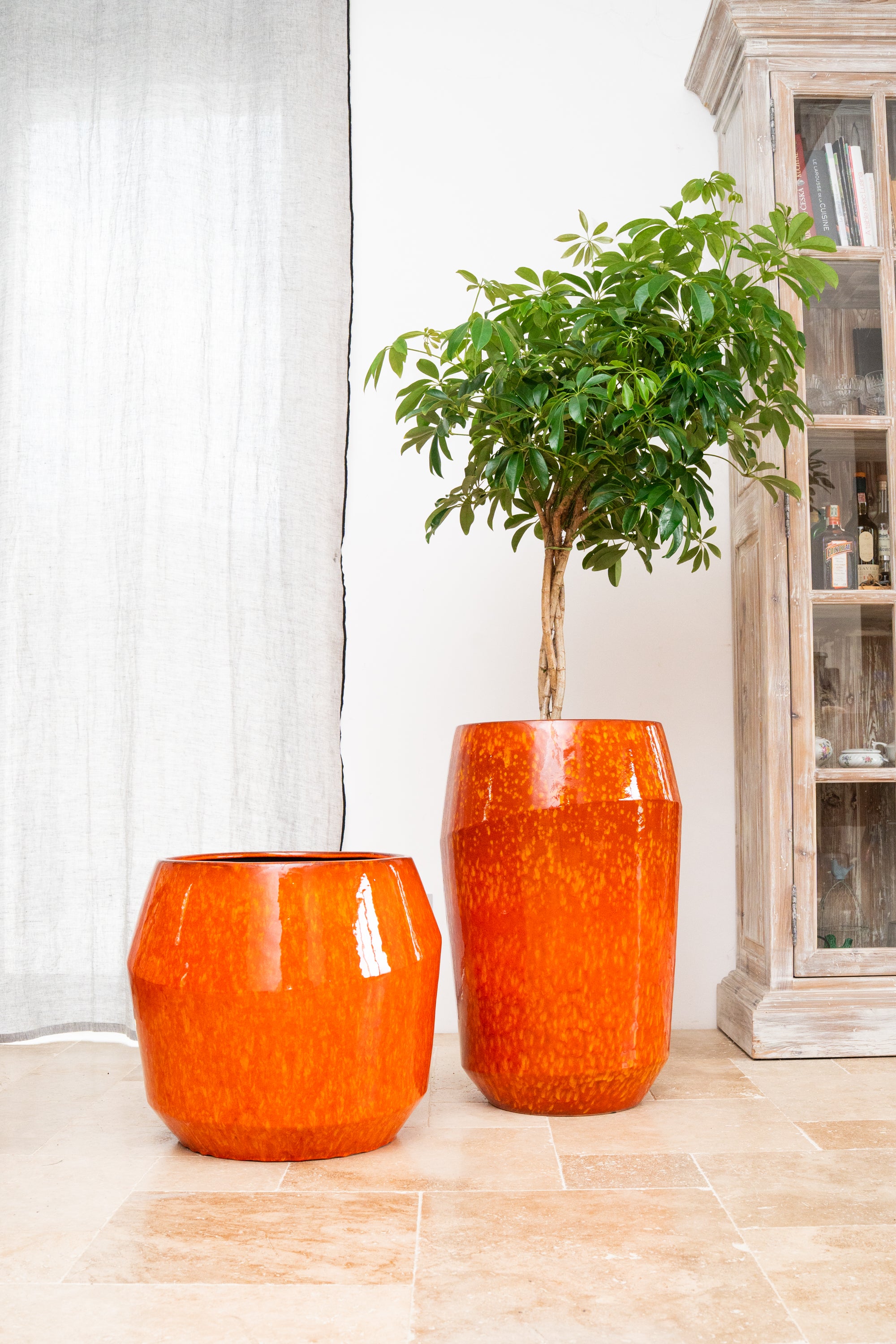 Tento elegantní keramický květináč v sytě červeno-oranžové glazuře s jemným žíháním dodá vašemu interiéru i exteriéru energii, teplo a výrazný stylový akcent. Díky dvěma velikostem – L (44 cm výška) a XXL (67 cm výška) – si snadno vyberete ideální variantu pro různé typy rostlin.