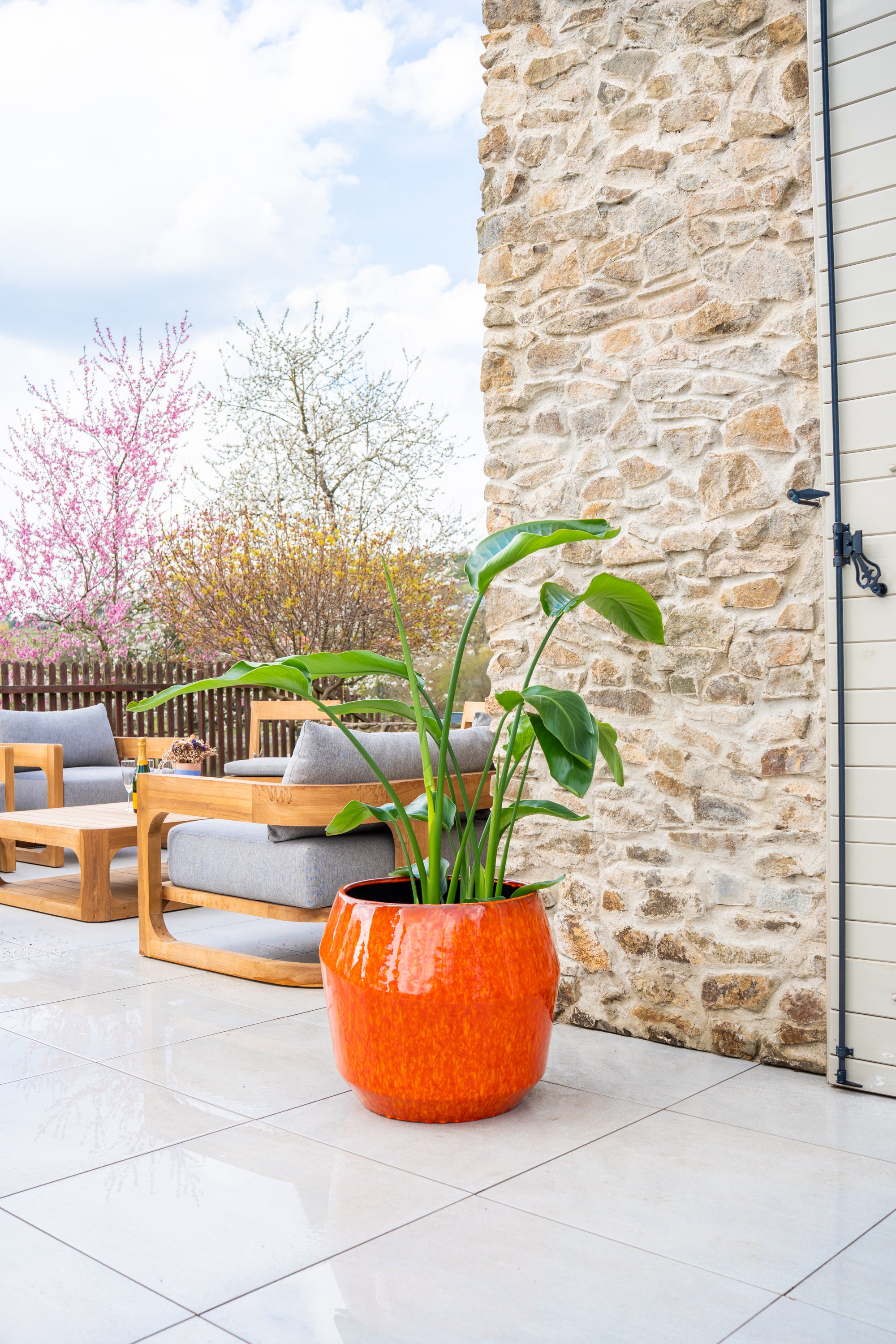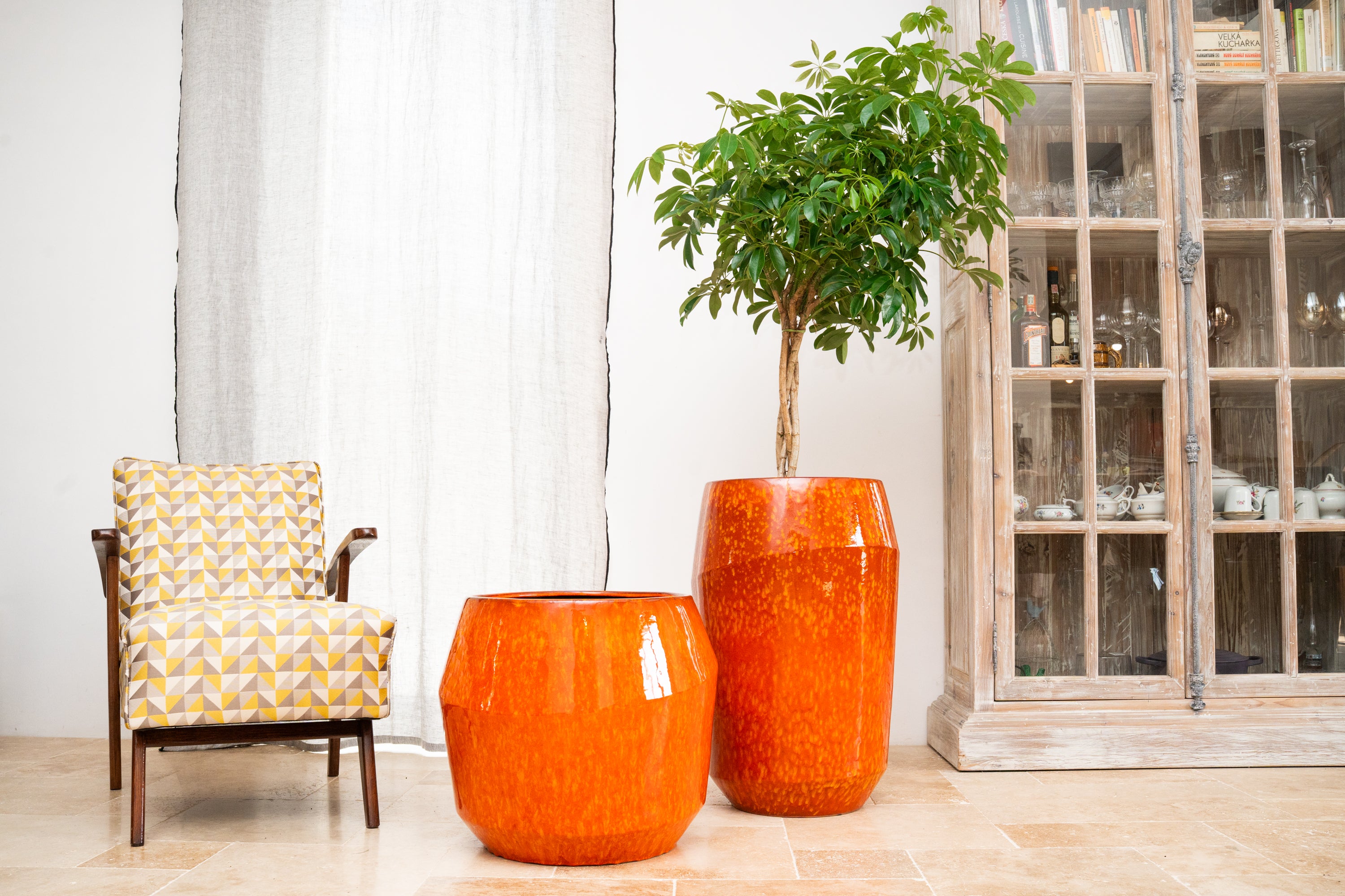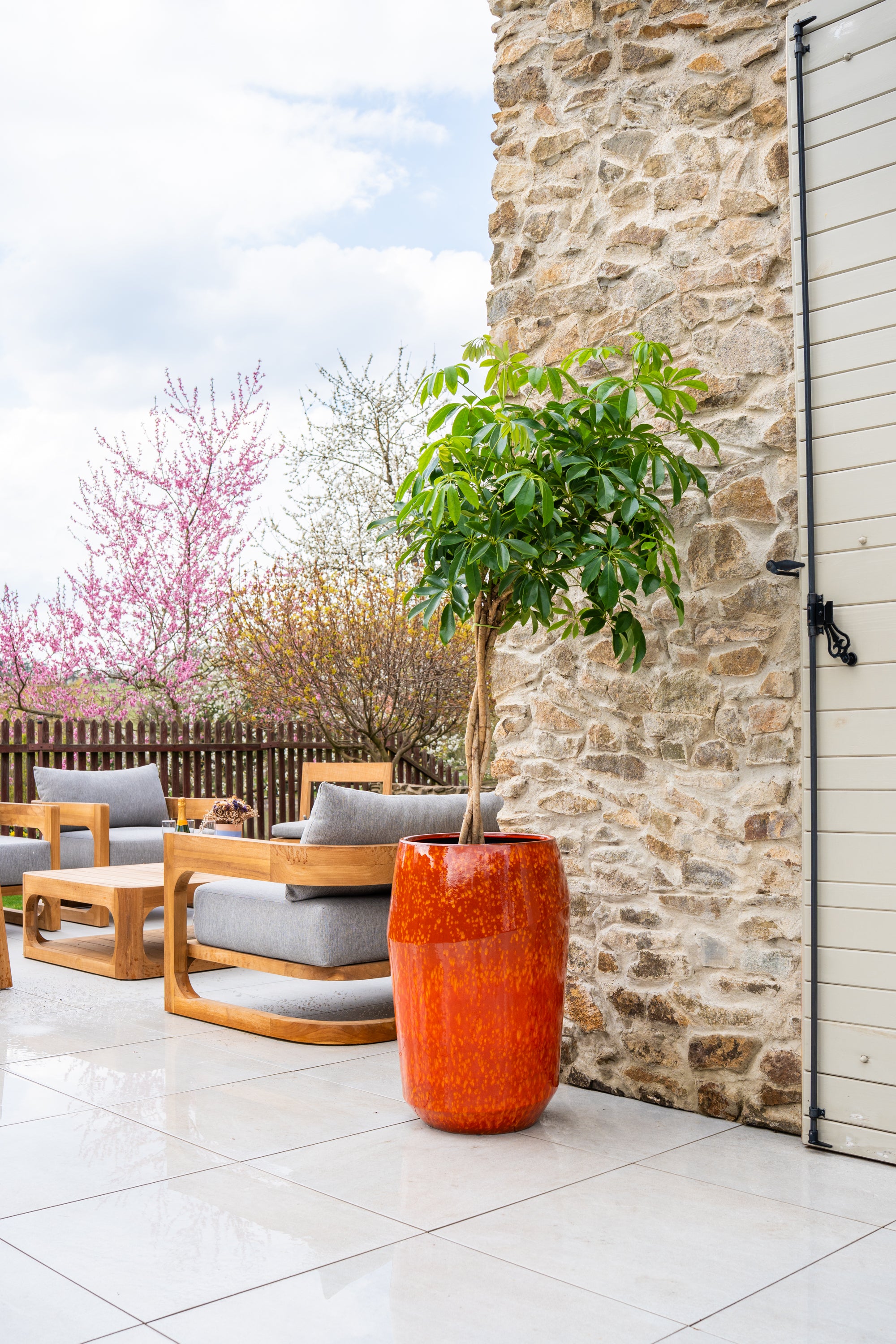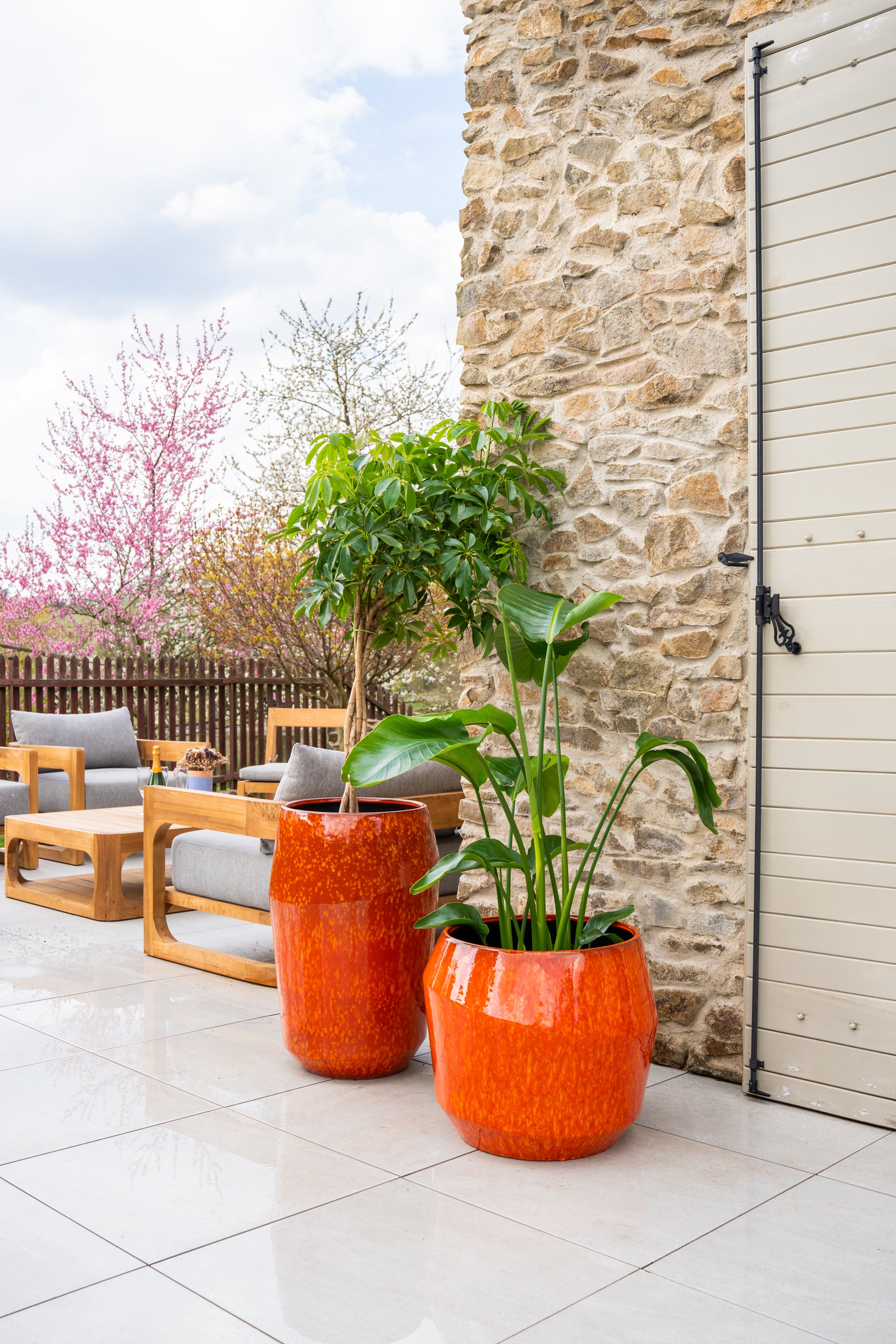 Tento elegantní keramický květináč v sytě červeno-oranžové glazuře s jemným žíháním dodá vašemu interiéru i exteriéru energii, teplo a výrazný stylový akcent. Díky dvěma velikostem – L (44 cm výška) a XXL (67 cm výška) – si snadno vyberete ideální variantu pro různé typy rostlin.