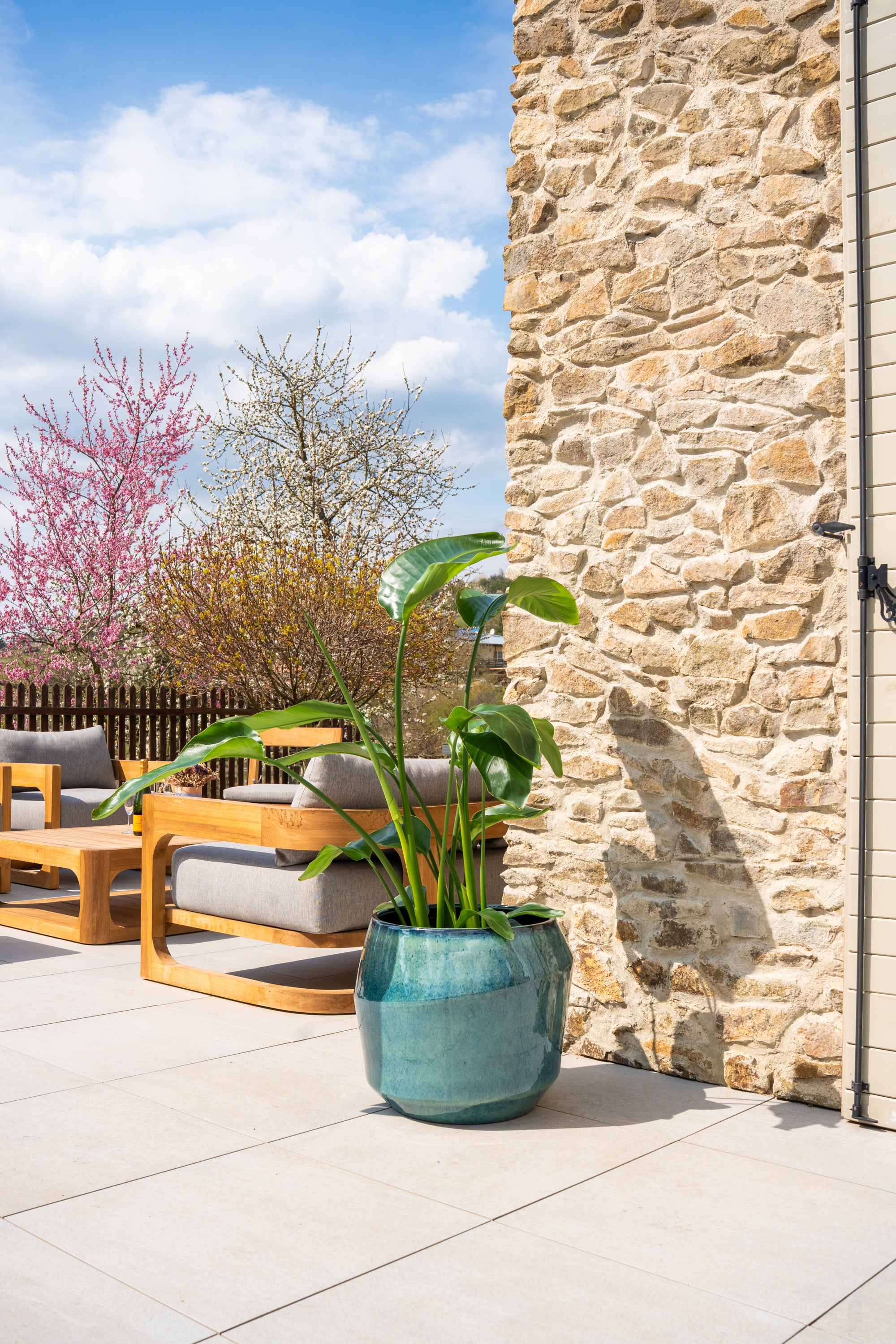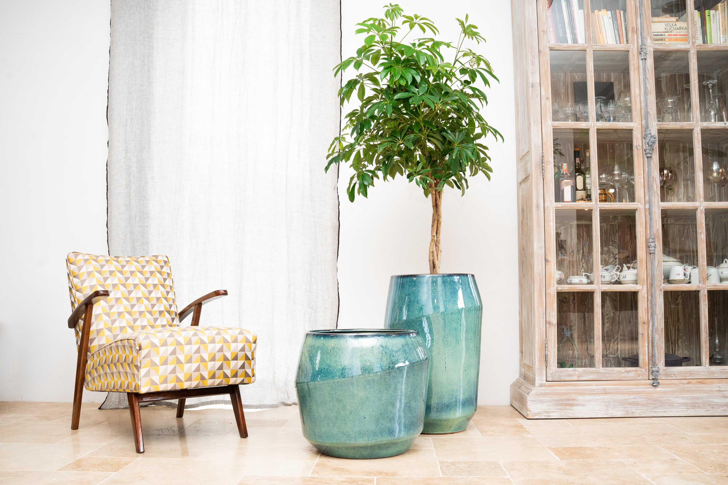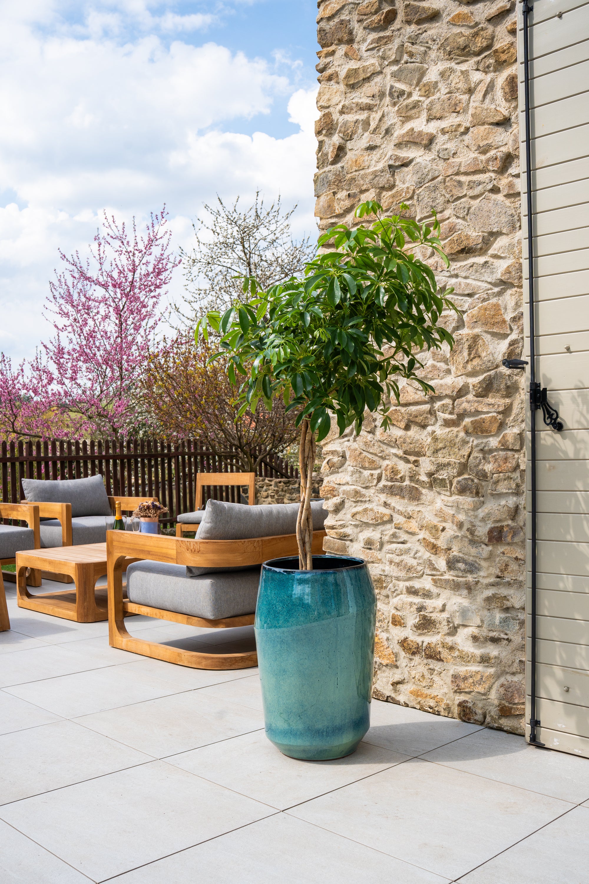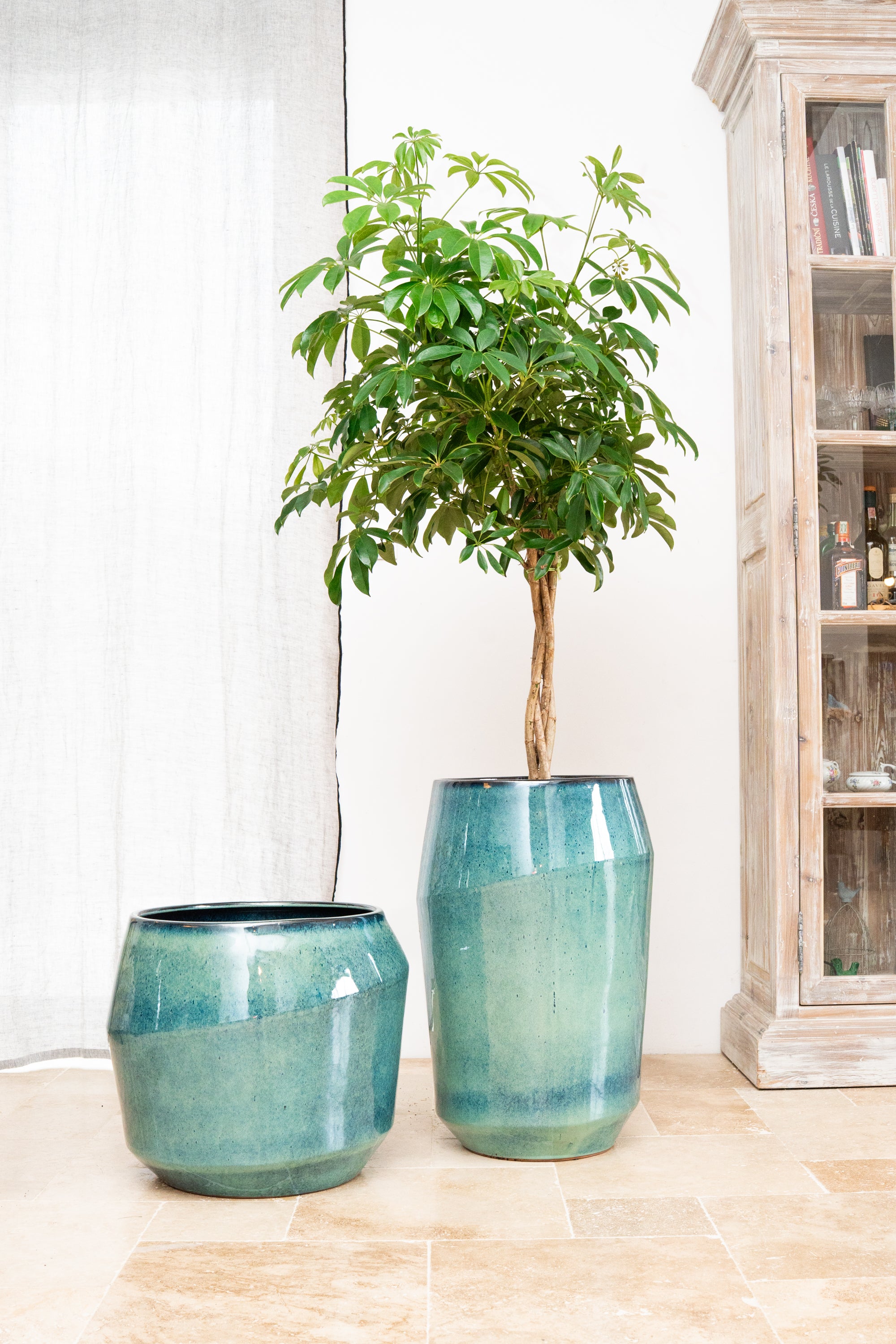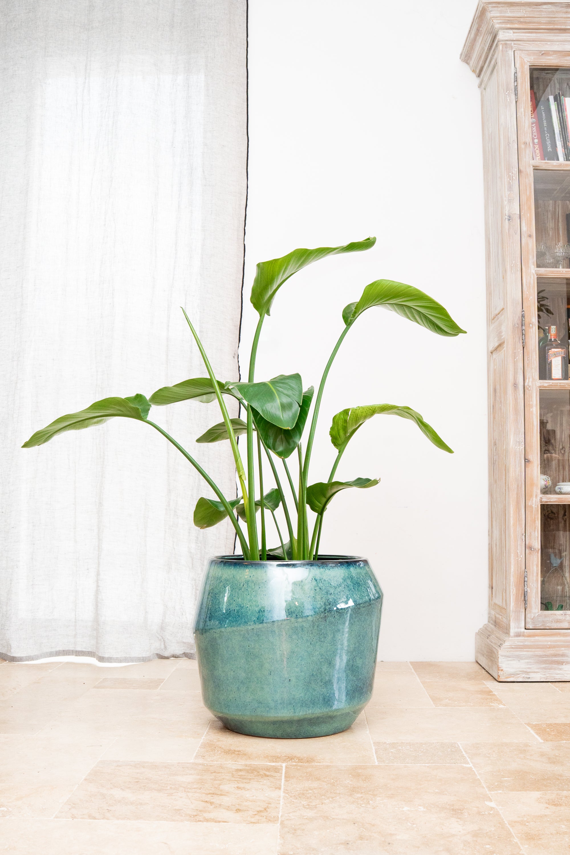 Tento elegantní keramický květináč v světle modré glazuře s jemným žíháním dodá vašemu interiéru i exteriéru energii, teplo a výrazný stylový akcent. Díky dvěma velikostem – L (44 cm výška) a XXL (67 cm výška) – si snadno vyberete ideální variantu pro různé typy rostlin.