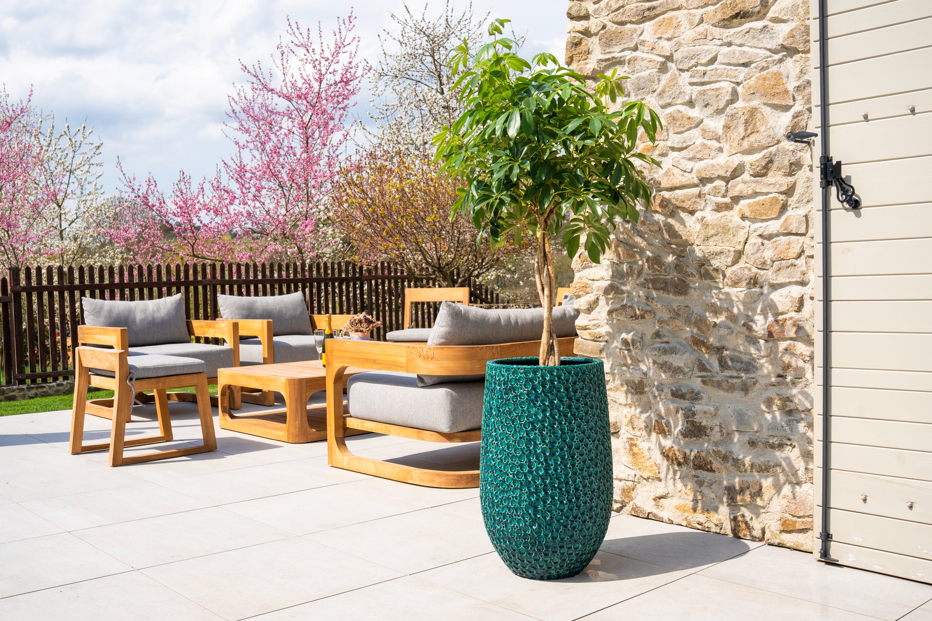 Strukturovaný povrch květináče vytváří atraktivní světelné odlesky a činí z něj výjimečný designový prvek. Je vyroben z kvalitní mrazuvzdorné keramiky, a tak se skvěle hodí jak do interiéru, tak i na terasu, balkon nebo zahradu. Užijte si krásu a funkčnost po celý rok!