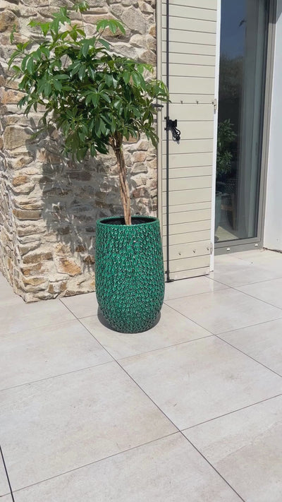 Tento elegantní keramický květináč v originální zelené barvě s plastickým, strukturovaným povrchem dodá vašemu interiéru či exteriéru moderní a luxusní vzhled. Díky výšce 63 cm a objemu 34 litrů je ideální pro větší rostliny, které si zaslouží důstojný prostor k růstu i prezentaci.