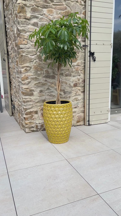 Tento elegantní keramický květináč v nádherné žluté barvě s výrazným plastickým vzorem dodá vašemu interiéru i exteriéru energii, styl a luxusní nádech. Díky výšce 53 cm a objemu 35 litrů je ideální pro středně velké až větší rostliny, které v něm krásně vyniknou.