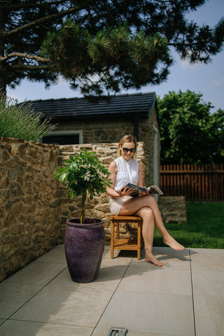 Květináč Poseidon přináší do vaší zahrady či na terasu jedinečný prvek, který spojuje tradiční řemeslné zpracování a moderní eleganci. Tento velký květináč je pečlivě ručně vyráběný z glazované terakoty, díky čemuž je každý kus originál. Fialová glazura dodává nádobě výraznou barevnost a zároveň chrání povrch před povětrnostními vlivy.