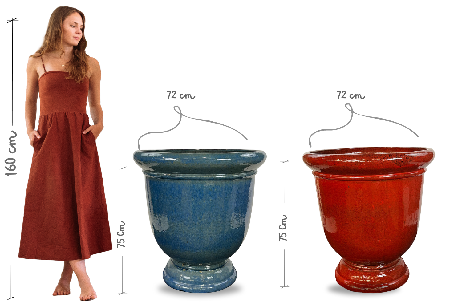 Květináč Titan je symbolem monumentální elegance a funkčnosti. Tento ručně vyráběný keramický květináč, navržený pro náročné milovníky rostlin, nabízí dostatek prostoru a stability pro velké stromy, palmy nebo olivovníky. Se svou výškou 75 cm se Titan řadí mezi největší květináče v naší nabídce, což z něj činí dominantu každého prostoru.